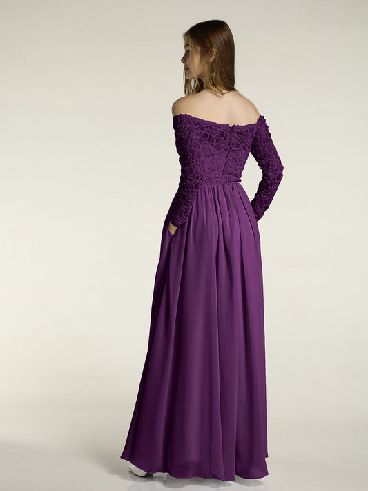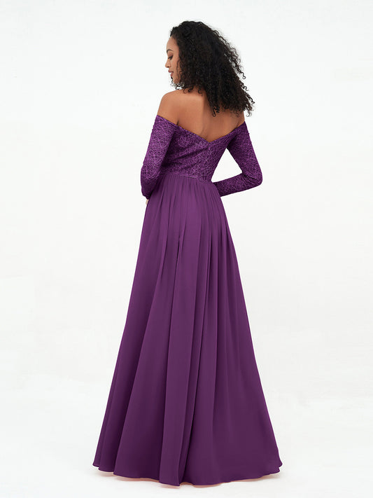 Babaroni JoannaVestidos largos de encaje con mangas largas y hombros descubiertos Uva