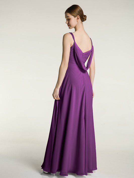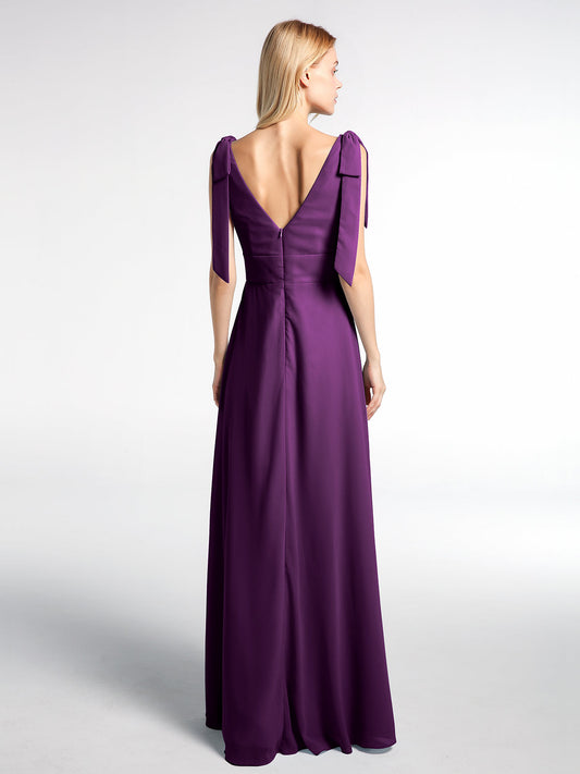 Babaroni VitaVestido de dama de honor de chiffon con escote en V y espalda descubierta Uva