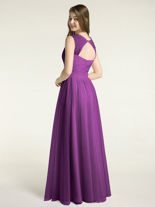 Babaroni EvelynVestidos de tul con espalda convertible y largo hasta el suelo Uva