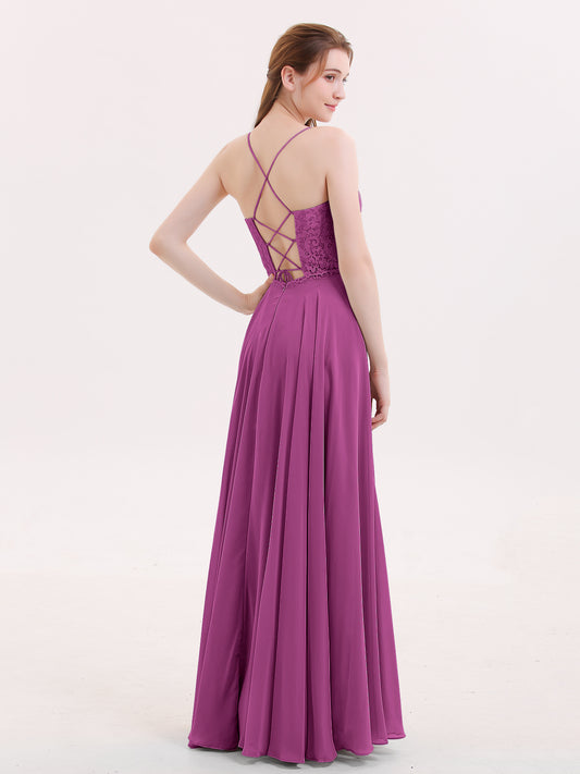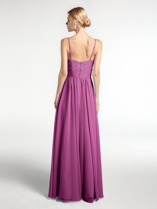 Babaroni CherryVestidos largos de encaje y chiffon con tirantes finos Orquídea