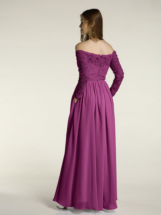 Babaroni MeilaniVestidos de encaje y chiffon con mangas largas y bolsillos Orquídea