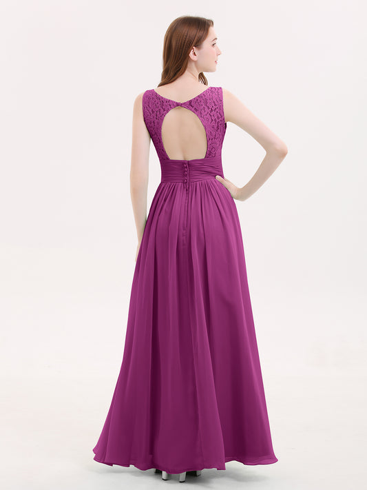 Babaroni LucilleVestidos largos de chiffon con encaje en escote en V profundo y espalda descubierta Orquídea