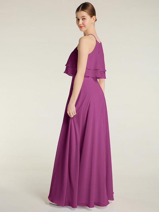 Babaroni FannyFanny Cabestro Largo Gasa Vestido De Dama De Honor Orquídea