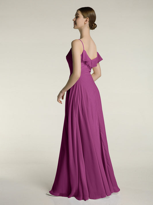 Babaroni JessicaVestidos de dama de honor de chiffon con tirantes finos Orquídea