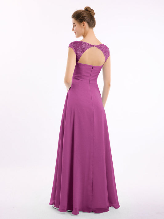 Babaroni MarleyVestidos de dama de honor de chiffon con mangas cap de encaje Orquídea