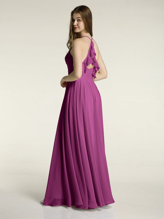 Babaroni MiriamVestidos largos de dama de honor estilo halter de chiffon Orquídea