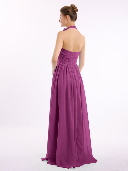 Babaroni LesleyVestidos largos de chiffon estilo halter con doble tirante Orquídea