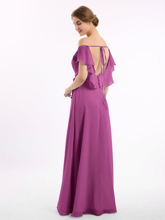 Babaroni NicoleVestidos largos de dama de honor de chiffon sin tirantes Orquídea