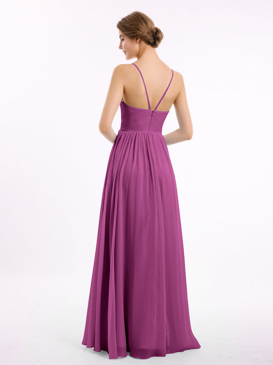 Babaroni VickyVestidos de dama de honor de chiffon con escote en V y tirantes finos Orquídea
