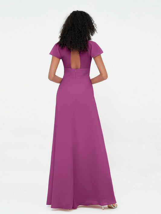 Babaroni SallyVestidos de dama de honor de chiffon con mangas cap y abertura Orquídea