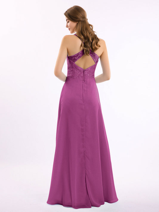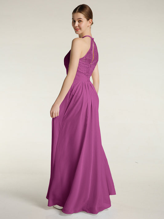 Babaroni AmandaVestidos largos de chiffon y encaje estilo halter Orquídea
