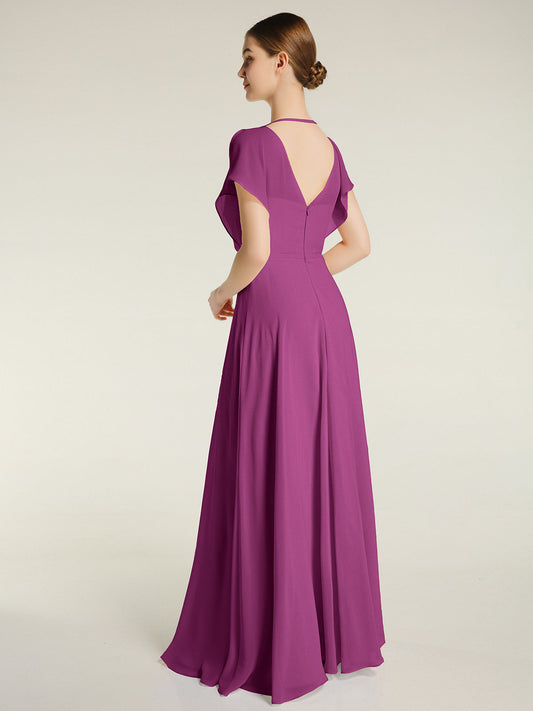 Babaroni AprilVestido sencillo de chiffon estilo halter con abertura Orquídea