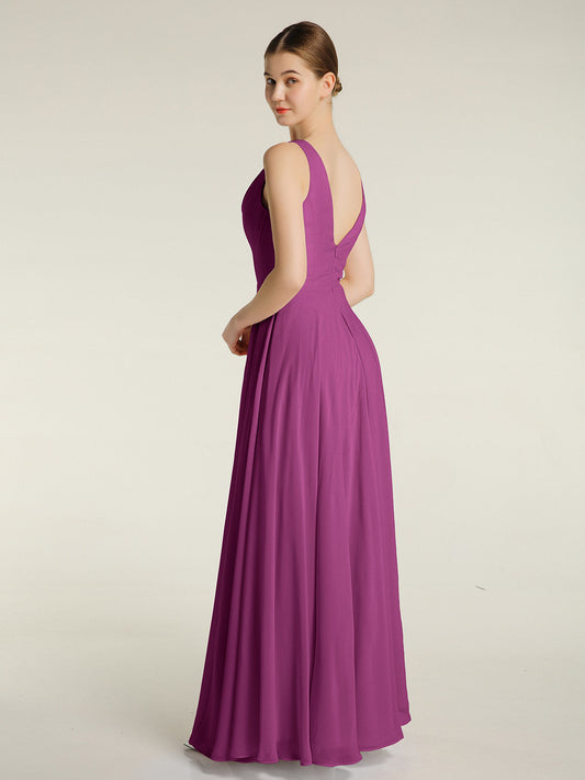 Babaroni CarolVestidos sencillos de chiffon con escote en V Orquídea