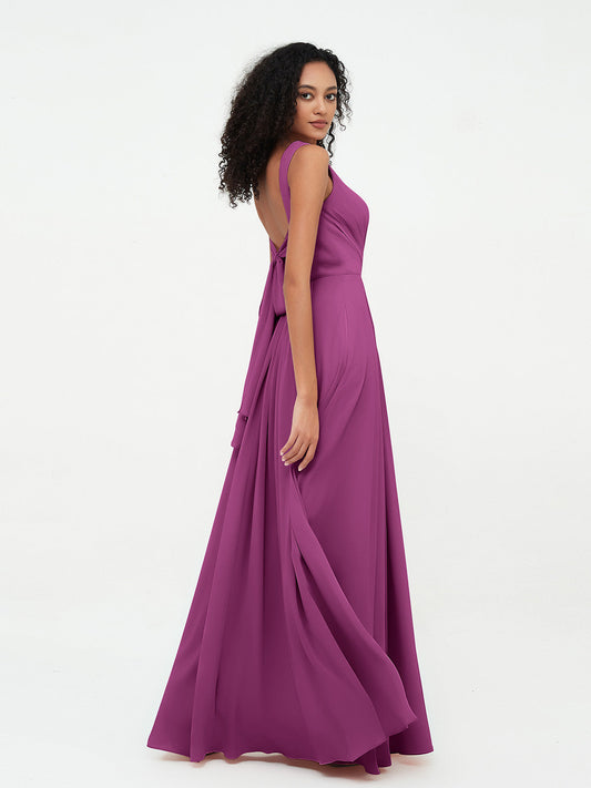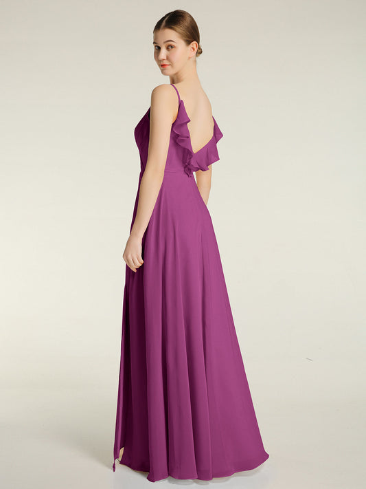 Babaroni VitaVestido de dama de honor de chiffon con escote en V y espalda descubierta Orquídea