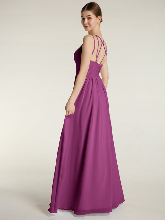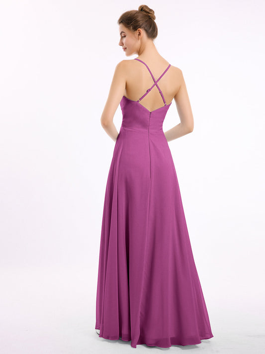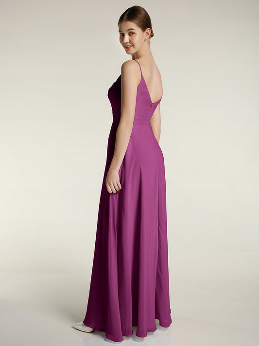 Babaroni FeliciaVestidos largos de chiffon con tirantes finos y escote en corazón Orquídea