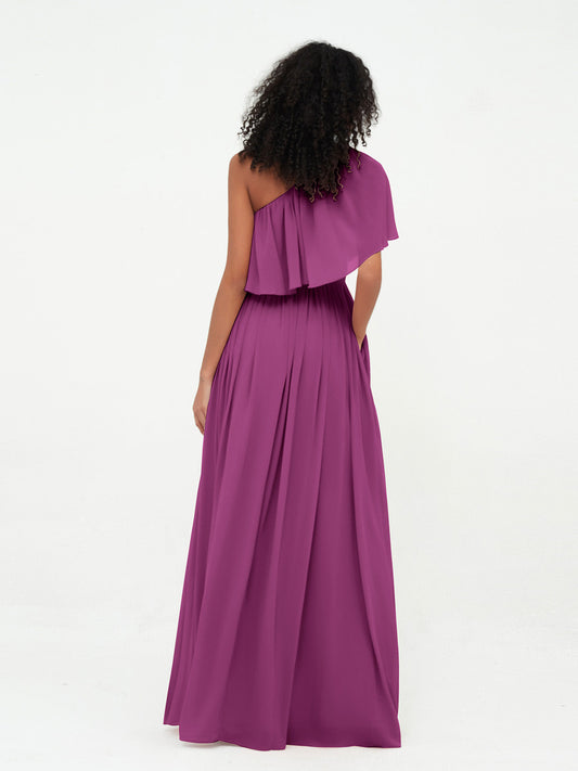 Babaroni MildredVestidos largos de chiffon de un hombro con bolsillos Orquídea