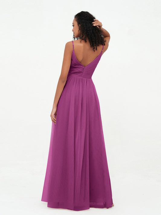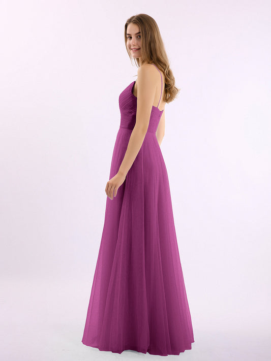 Babaroni MarjorieVestidos largos de tul plisado con tirantes spaghetti Orquídea
