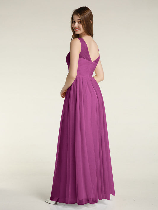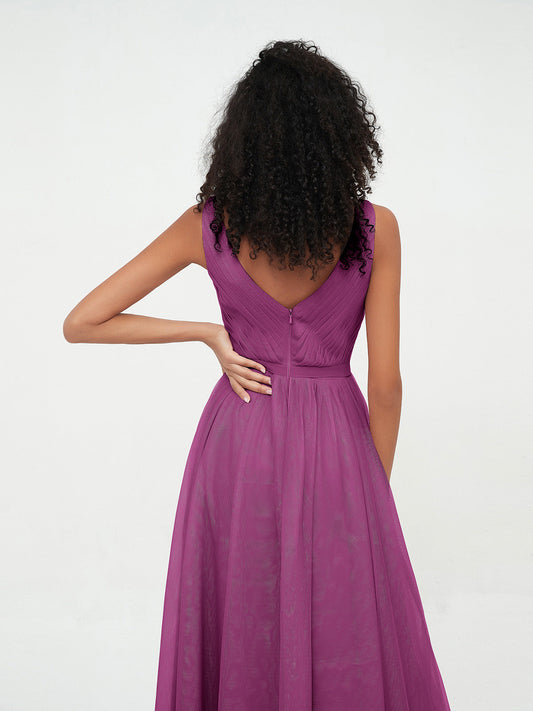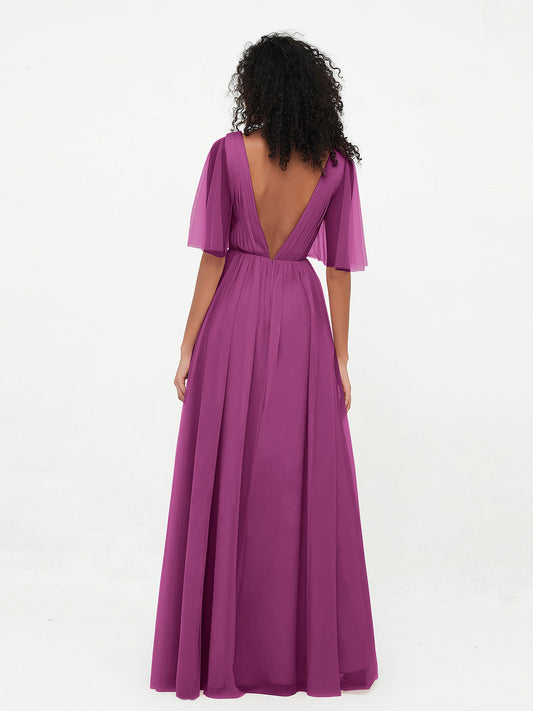 Babaroni KatherineVestidos máximos de tul estilo A-line con escote en V profundo en la espalda Orquídea