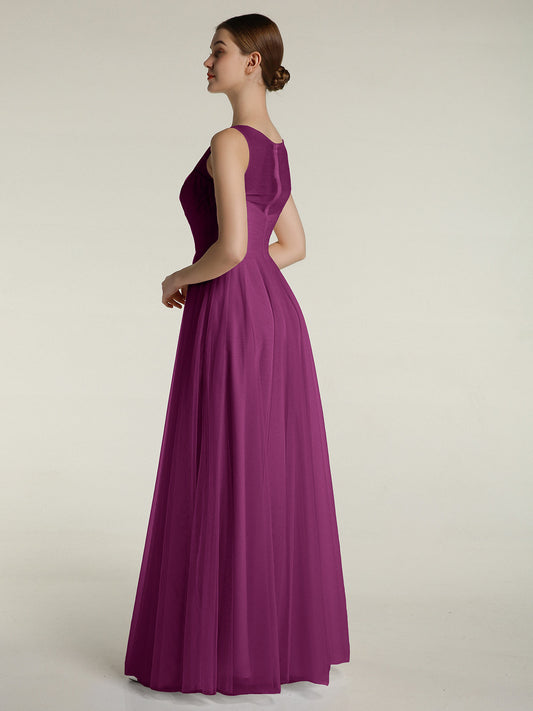 Babaroni TessVestidos de dama de honor de tul cruzado con escote ilusión Orquídea