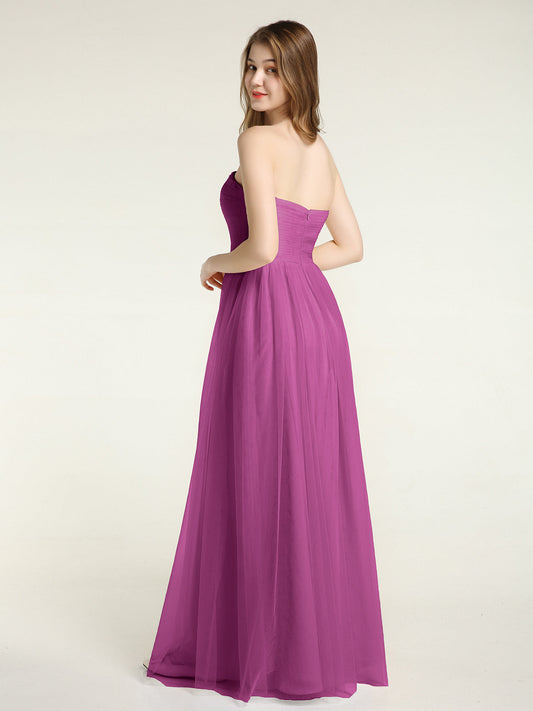 Babaroni ViolaVestidos largos de dama de honor sin tirantes con escote en corazón y falda de tul Orquídea