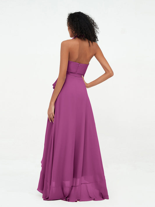 Babaroni VenusVestidos asimétricos de chiffon con cuello halter y escote en V profundo Orquídea