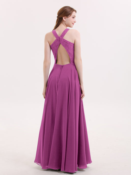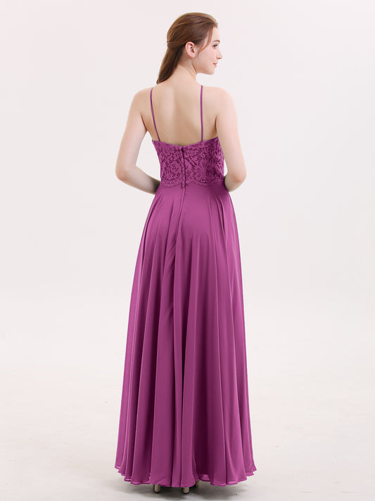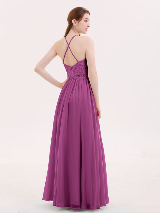Babaroni FannyFanny Cabestro Largo Gasa Vestido De Dama De Honor Orquídea