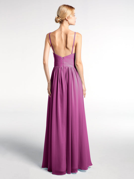 Babaroni HedyVestido largo de chiffon con escote en forma de V y cintura imperio Orquídea