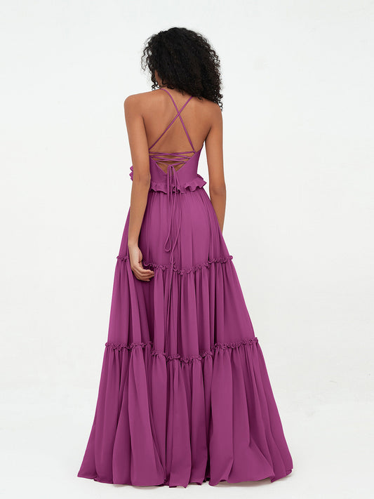 Babaroni UrsulaVestidos máximos bohemios de chiffon con falda escalonada estilo Empire Orquídea
