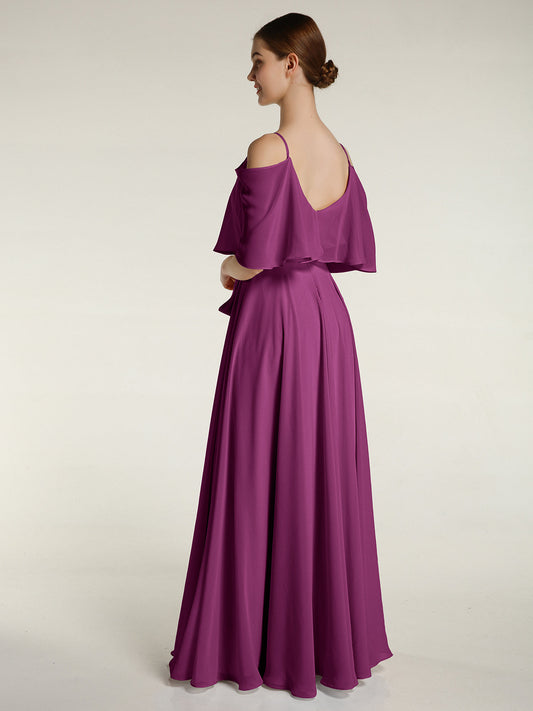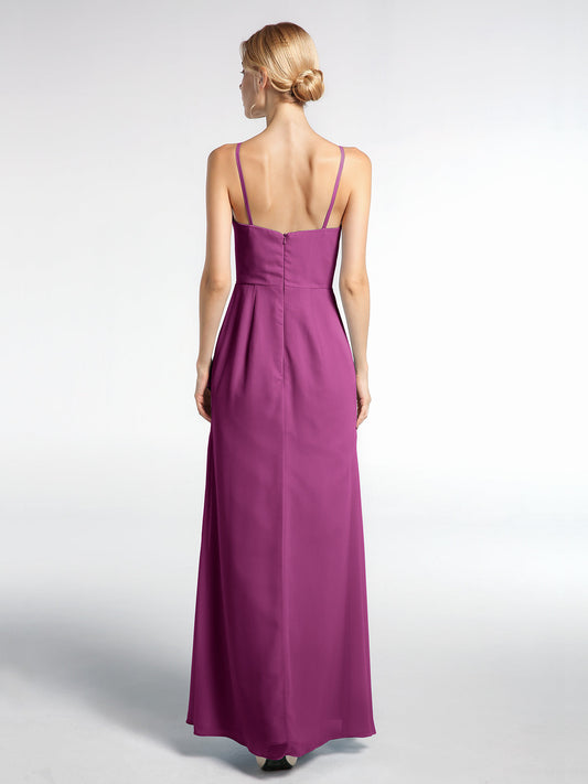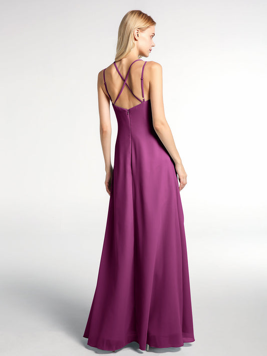 Babaroni CoraVestido largo de dama de honor de chiffon con tirantes dobles Orquídea