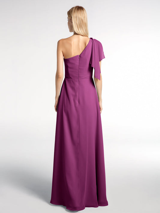 Babaroni SalomeVestido maxi de chiffon de un solo hombro con detalle en cascada Orquídea