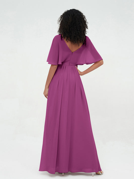 Babaroni UnaVestidos máximos de chiffon con escote en V profundo y mangas 1/2 Orquídea