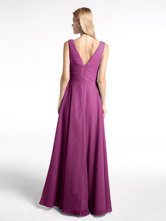Babaroni SibylVestido largo de chiffon sencillo con escote en forma de muesca Orquídea