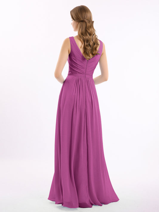 Babaroni GeorgiaGeorgia Escote En V Gasa Largo Vestido De Dama De Honor Orquídea