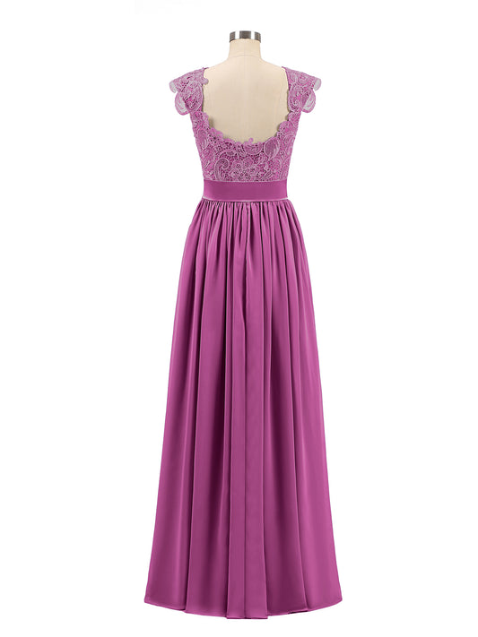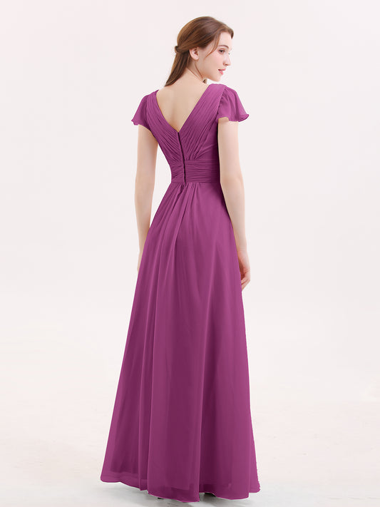 Babaroni JacquelineJacqueline Largo Gasa Vestido De Dama De Honor Con Mangas De La Tapa Orquídea