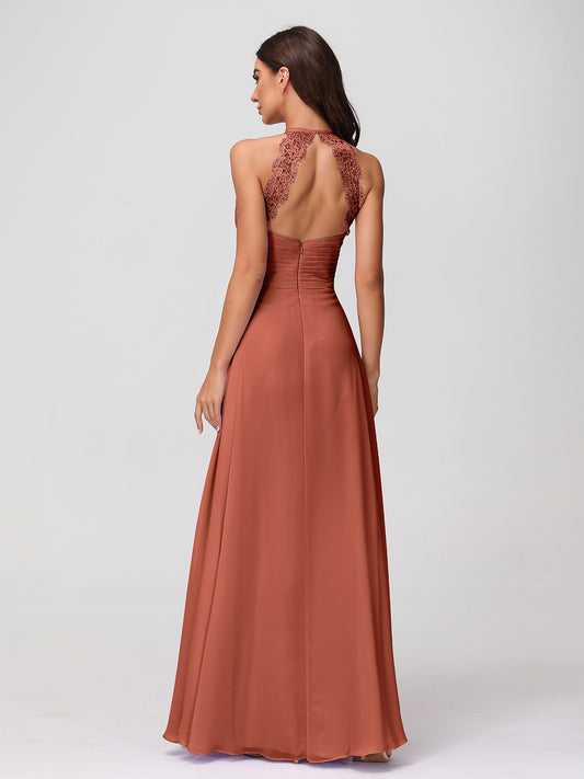 Babaroni AdalynAdalyn Escote En V Gasa Y Encaje Maxi Corte De Dama De Honor Óxido