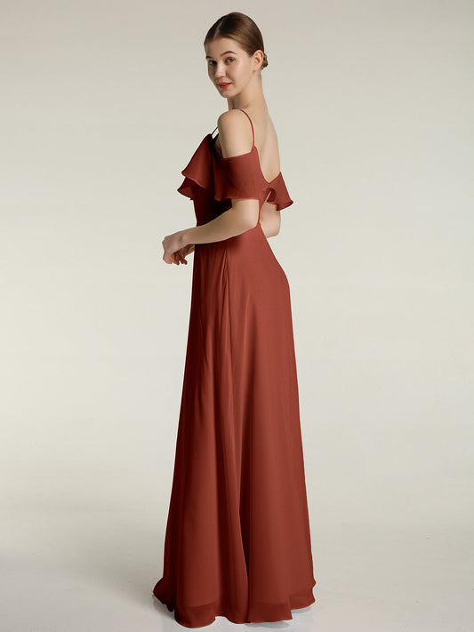Babaroni JessicaVestidos de dama de honor de chiffon con tirantes finos Óxido