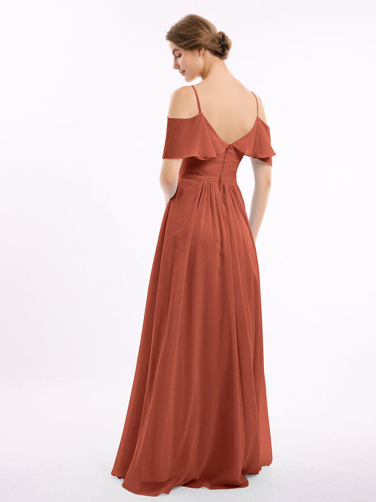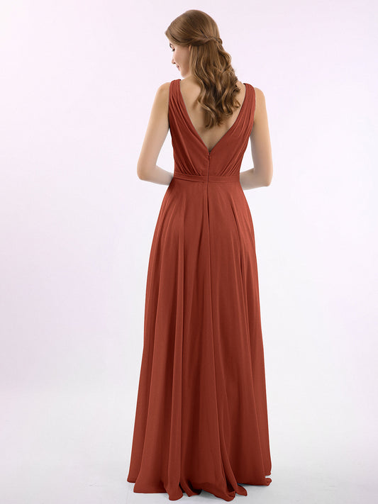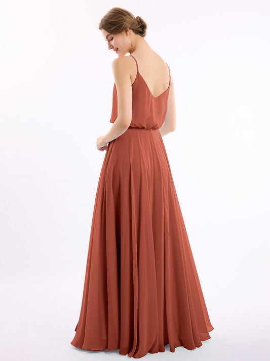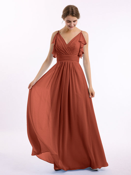 Babaroni VickyVestidos de dama de honor de chiffon con escote en V y tirantes finos Óxido