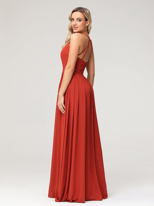 Babaroni LesleyVestidos largos de chiffon estilo halter con doble tirante Óxido
