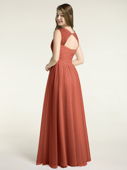 Babaroni VeraVestidos largos de tul cruzado plisado con tirantes decorados con cuentas Óxido