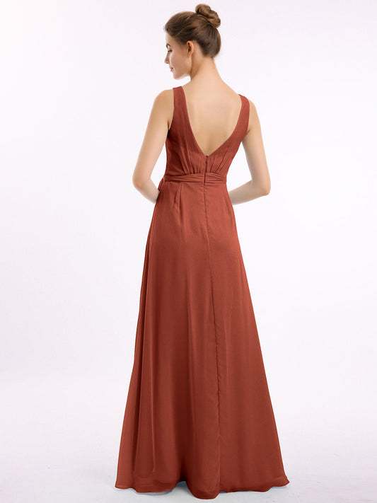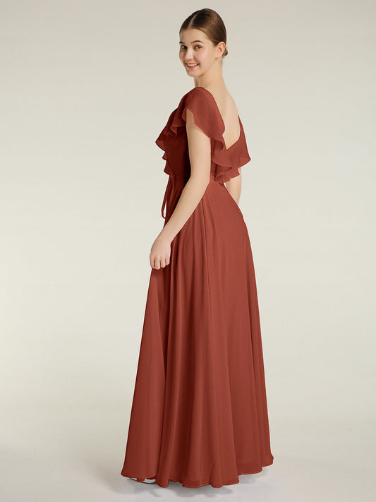 Babaroni LaurenVestidos largos de chiffon estilo princesa con abertura Óxido