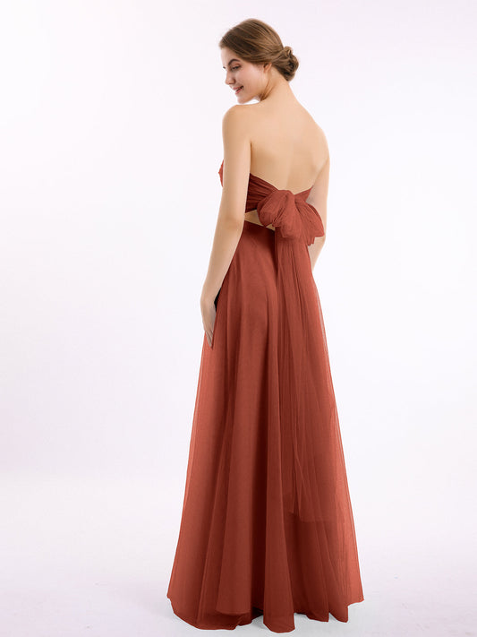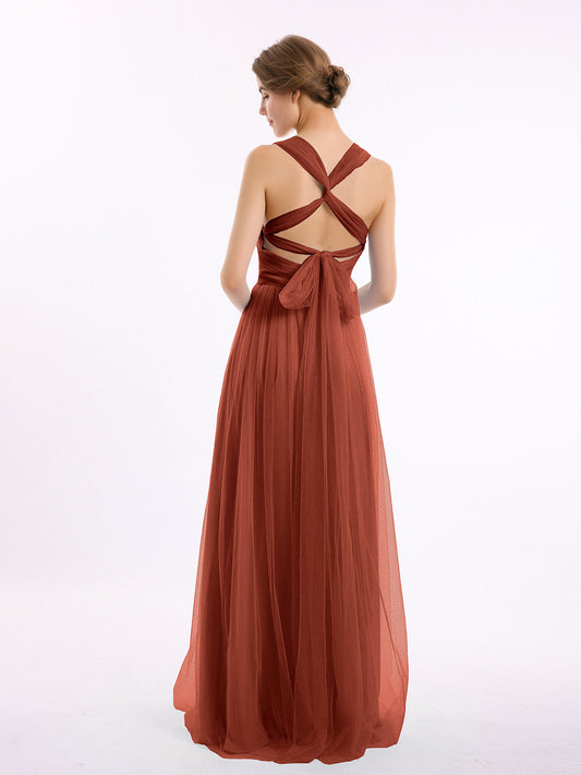 Babaroni EvelynVestidos de tul con espalda convertible y largo hasta el suelo Óxido