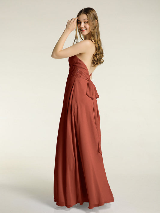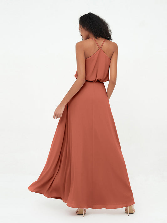 Babaroni MandyVestidos largos de chiffon estilo halter para damas de honor Óxido