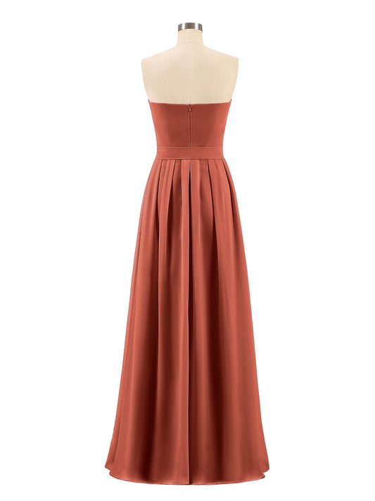 Babaroni FredericaFrederica Sin Tirante Gasa Largo Vestido De Dama De Honor Óxido