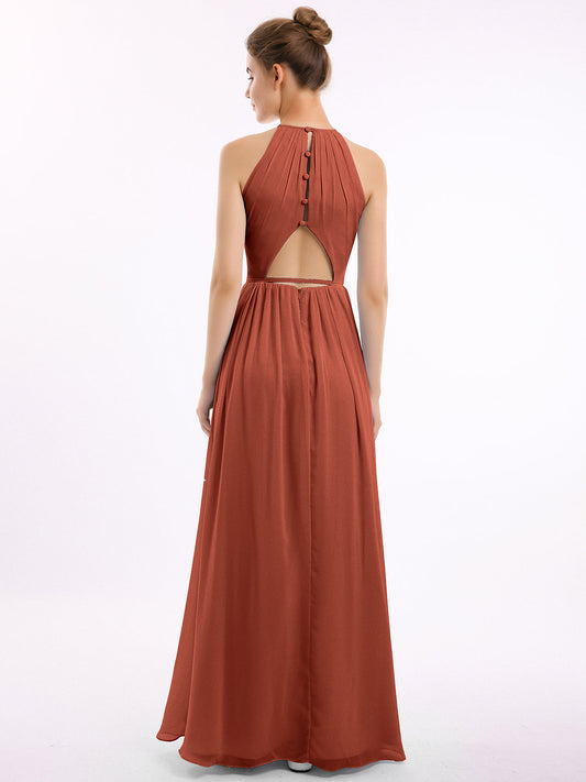 Babaroni CynthiaVestidos largos de chiffon estilo halter con espalda descubierta Óxido