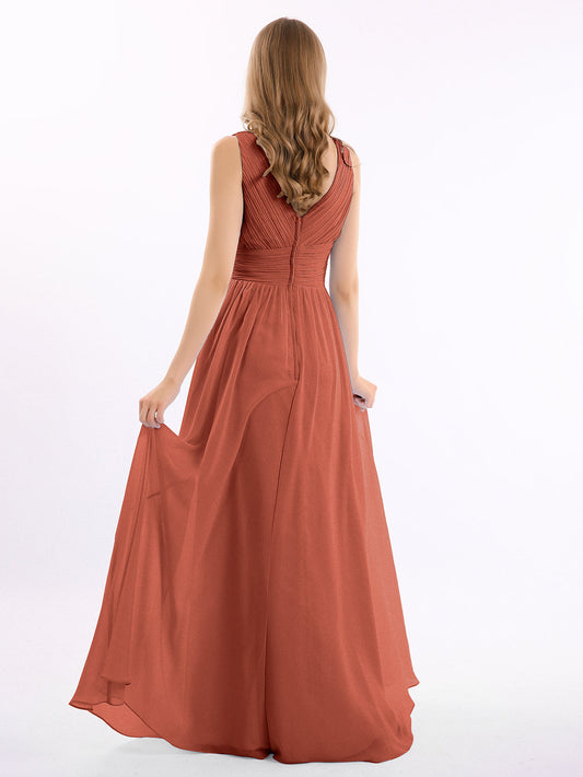 Babaroni GailVestidos largos de chiffon con escote en V hasta el suelo Óxido