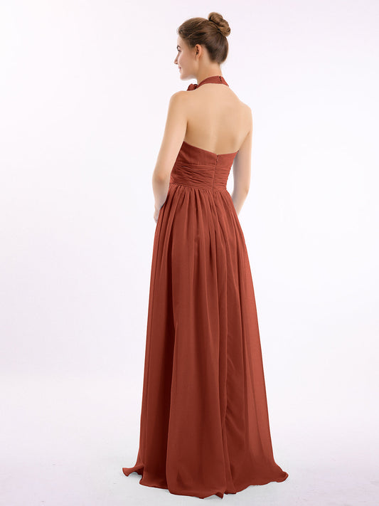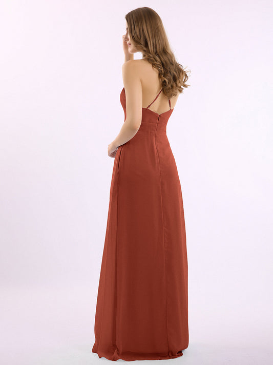 Babaroni LesleyVestidos largos de chiffon estilo halter con doble tirante Óxido