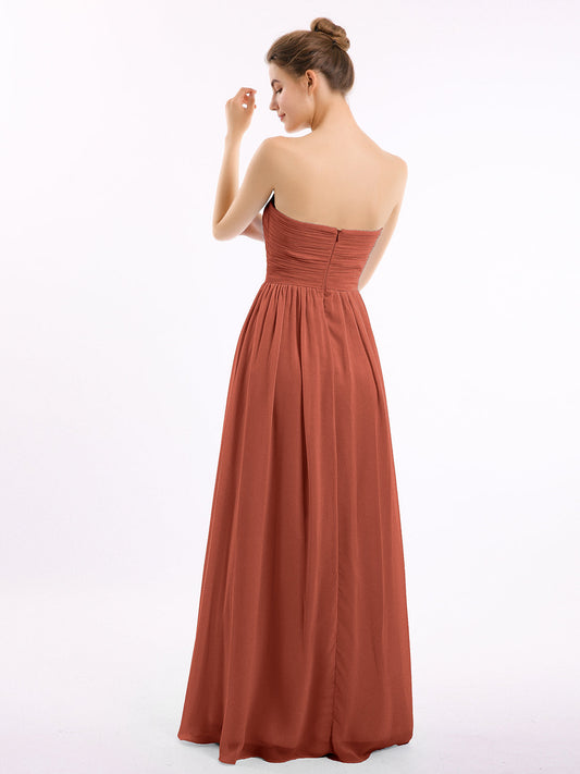 Babaroni NicoleVestidos largos de dama de honor de chiffon sin tirantes Óxido