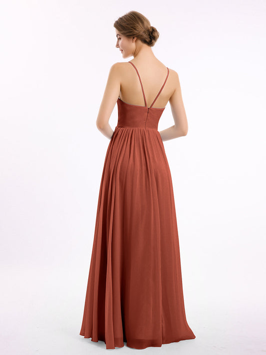 Babaroni VickyVestidos de dama de honor de chiffon con escote en V y tirantes finos Óxido