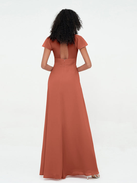 Babaroni SallyVestidos de dama de honor de chiffon con mangas cap y abertura Óxido