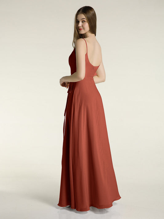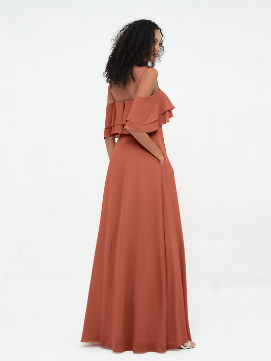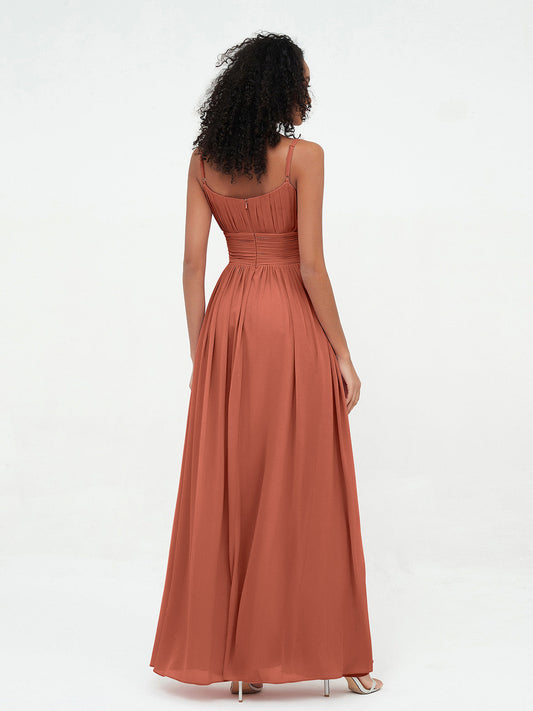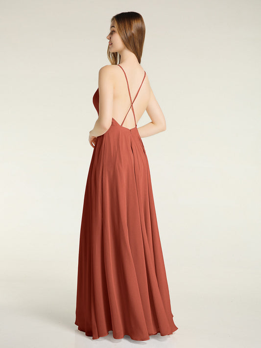 Babaroni MaudSencillos vestidos largos de chiffon con tirantes finos y abertura Óxido